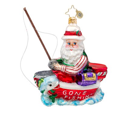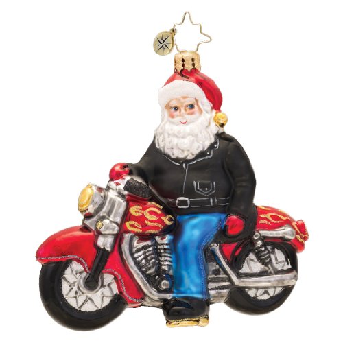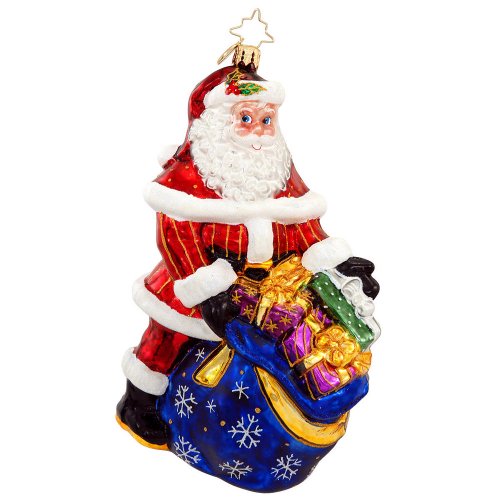 There is a big variety of Christopher Radko Santa ornaments to choose from. You can find everything from Santa on a motorcycle to Santa in a bubble bath. There’s also the usual Santa in his sleigh and also with his big bag of Christmas toys.